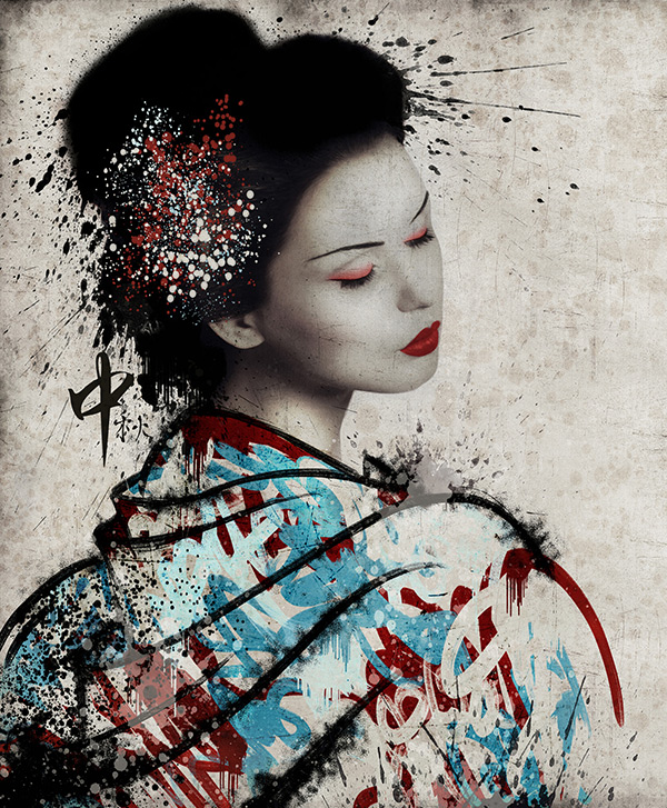 Art print on aluminium panel, with hand-applied surface material coating