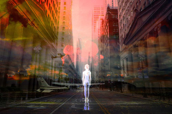 Three-dimensional art print on an aluminium panel. It utilises the optical properties of
